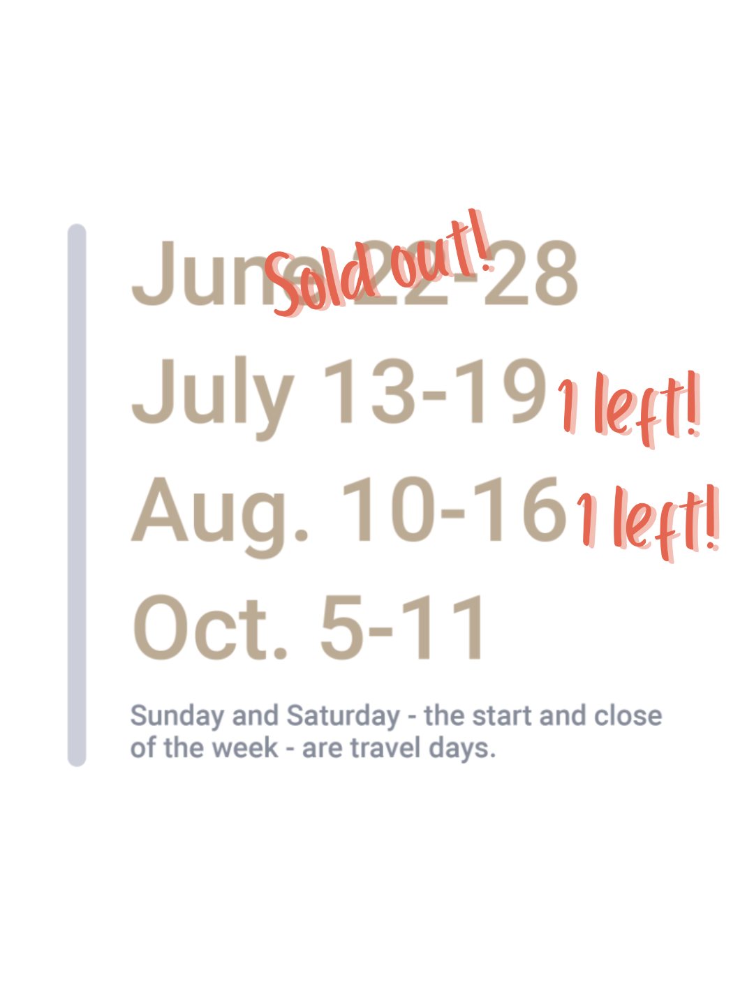 July 12 - 18, 2026:Â 2 spots